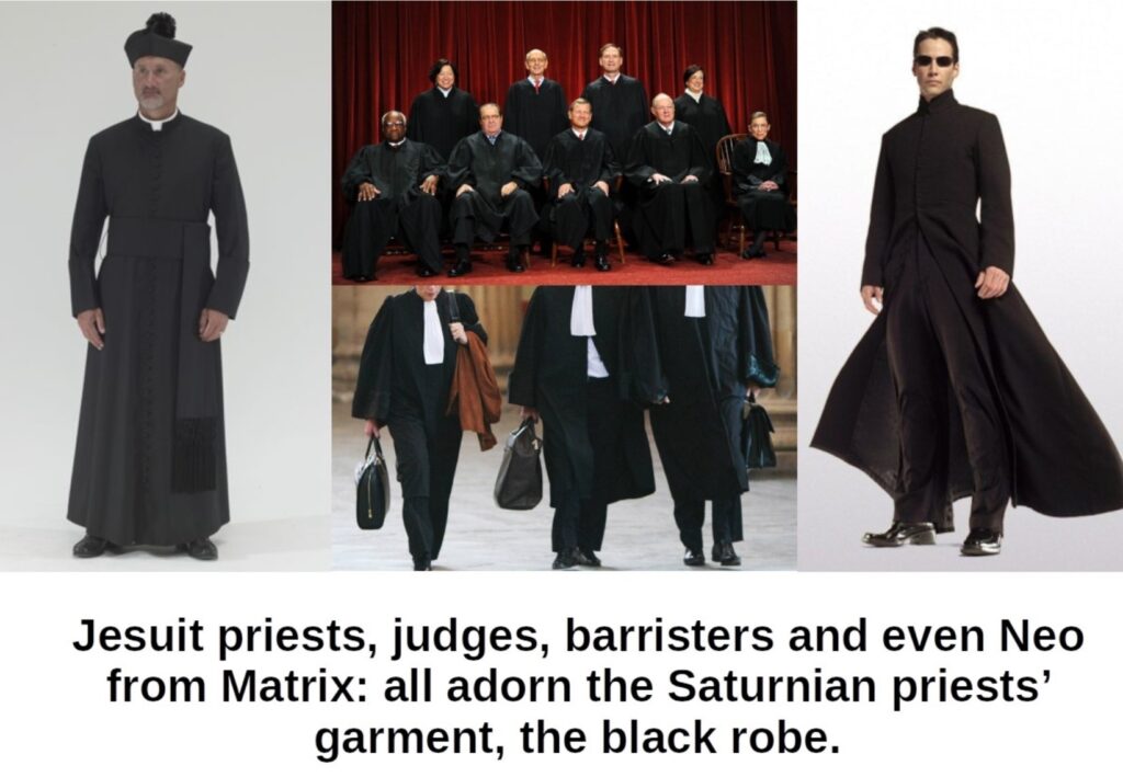 The black traditional Christian priest’s robe is also the saturnian priest’s robe. This is why the same robe is donned by Freemasonic priests in Black Mass and Luciferians, as well as American court judges, Jesuits, and even high school and college graduates.